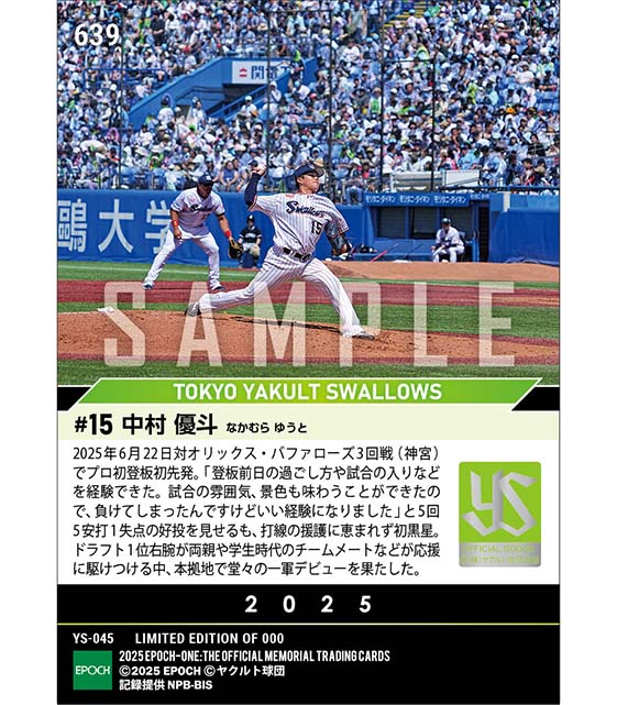 公式RC【中村優斗】堂々のプロ初登板初先発(25.6.22) のカードを買うならエポックワン!税込・送料無料!