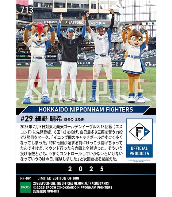 公式【細野晴希】自己最多9奪三振の力投でプロ2勝目(25.7.5) のカードを買うならエポックワン!税込・送料無料!