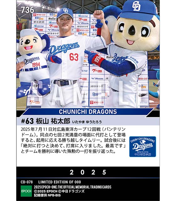 公式【板山祐太郎】殊勲の代打決勝タイムリー(25.7.11) のカードを買うならエポックワン!税込・送料無料!