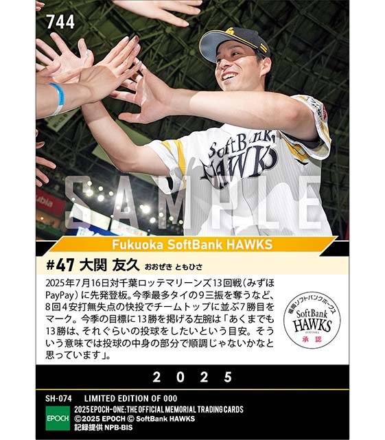 公式【大関友久】8回零封でチームトップタイ7勝目(25.7.16) のカードを買うならエポックワン!税込・送料無料!