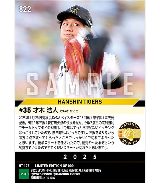 公式【才木浩人】今季2度目の完封勝利(25.7.26) のカードを買うならエポックワン!税込・送料無料!