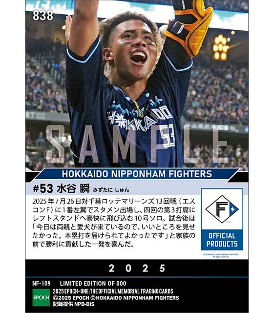 公式【水谷 瞬】自身初二ケタ本塁打達成(25.7.26) のカードを買うならエポックワン!税込・送料無料!