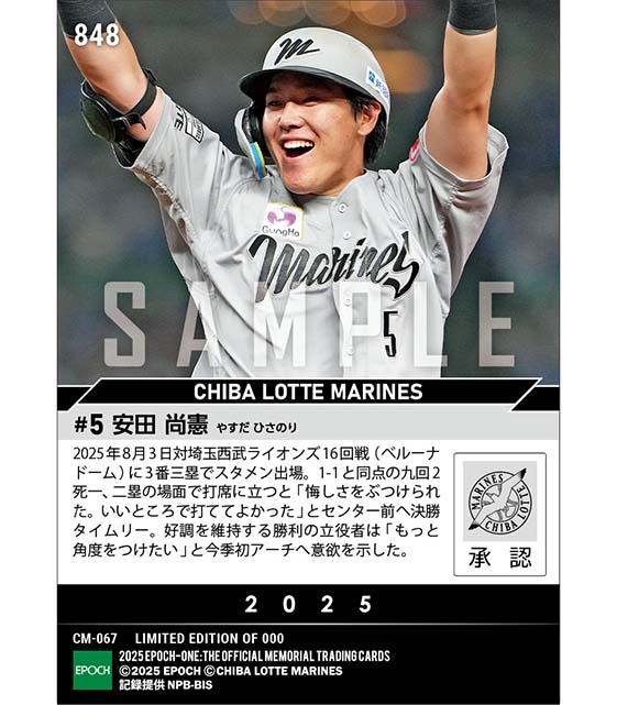 公式【安田尚憲】値千金の決勝打となる2試合連続タイムリー(25.8.3) のカードを買うならエポックワン!税込・送料無料!