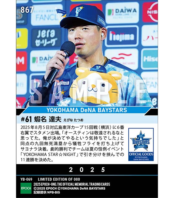 公式【蝦名達夫】STAR☆NIGHT 11連勝を決めるサヨナラ犠飛「YOKOHAMA STAR☆NIGHT 2025」(25.8.5) のカードを買うならエポックワン!税込・送料無料!