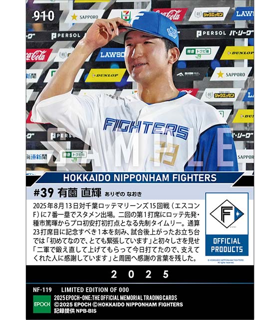公式【有薗直輝】待望のプロ初安打初打点(25.8.13) のカードを買うならエポックワン!税込・送料無料!