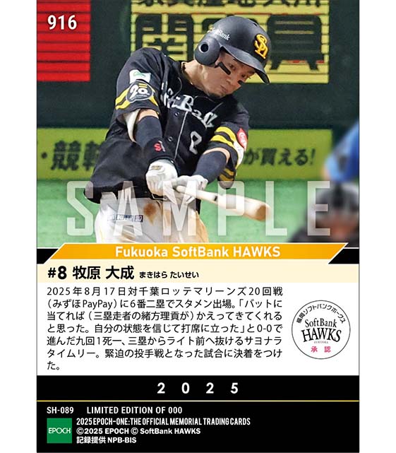 公式【牧原大成】白熱の投手戦に終止符を打つ劇的サヨナラ打(25.8.17) のカードを買うならエポックワン!税込・送料無料!