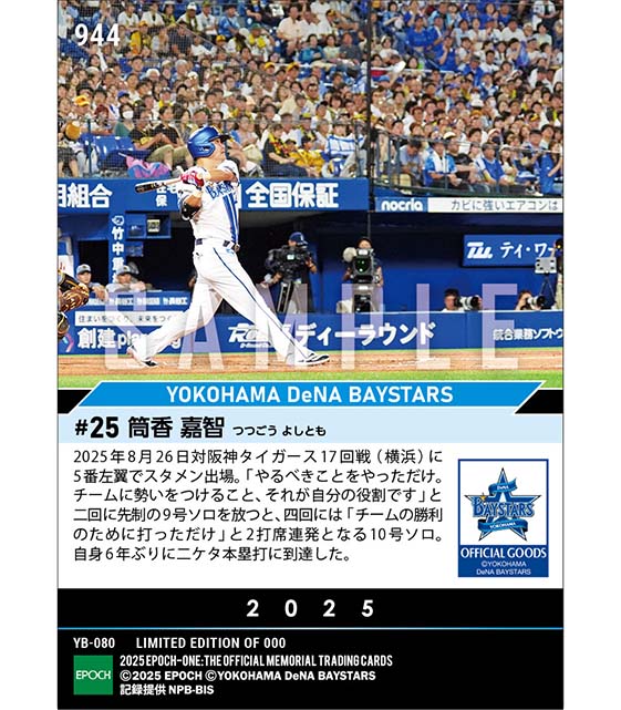 公式【筒香嘉智】2打席連発で6年ぶり二ケタ本塁打到達(25.8.26) のカードを買うならエポックワン!税込・送料無料!