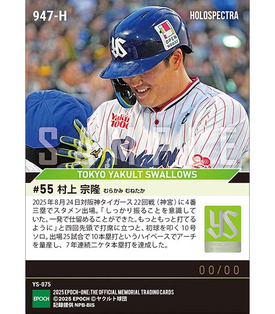 公式※ホロスペクトラ 【村上宗隆】7年連続二ケタ本塁打達成(25.8.24) のカードを買うならエポックワン!税込・送料無料!
