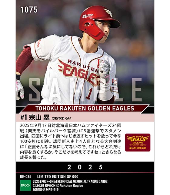 公式RC【宗山 塁】球団新人史上4人目の100安打到達(25.9.17) のカードを買うならエポックワン!税込・送料無料!