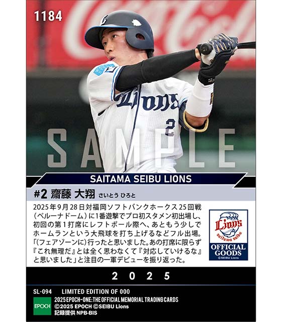 公式RC【齋藤大翔】1番遊撃で一軍デビュー(25.9.28) のカードを買うならエポックワン!税込・送料無料!