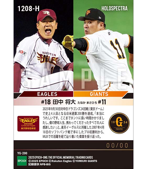 公式※ホロスペクトラ 【田中将大】史上4人目の日米通算200勝達成(25.9.30) のカードを買うならエポックワン!税込・送料無料!
