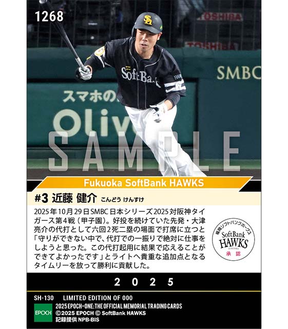 公式【近藤健介】起用に応える代打タイムリー「SMBC日本シリーズ2025」(25.10.29) のカードを買うならエポックワン!税込・送料無料!