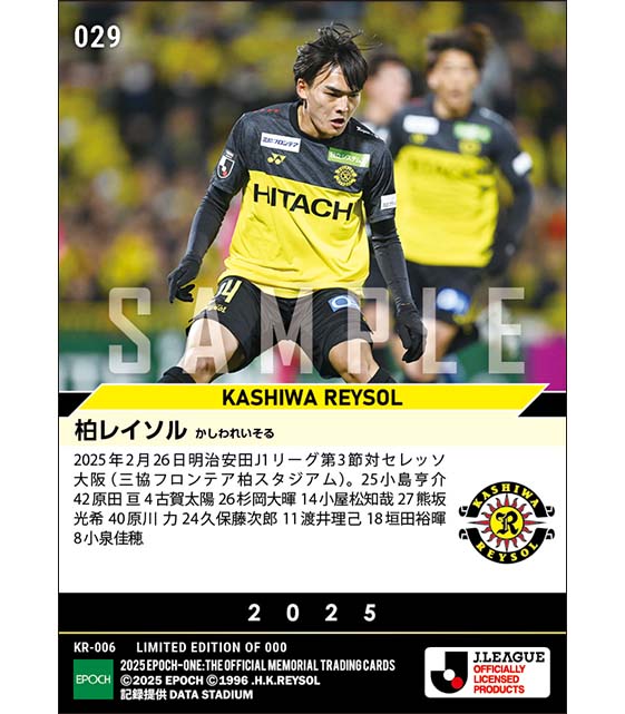 公式【柏レイソル】2025シーズン第3節スタメン(25.2.26) のカードを買うならエポックワン!税込・送料無料!