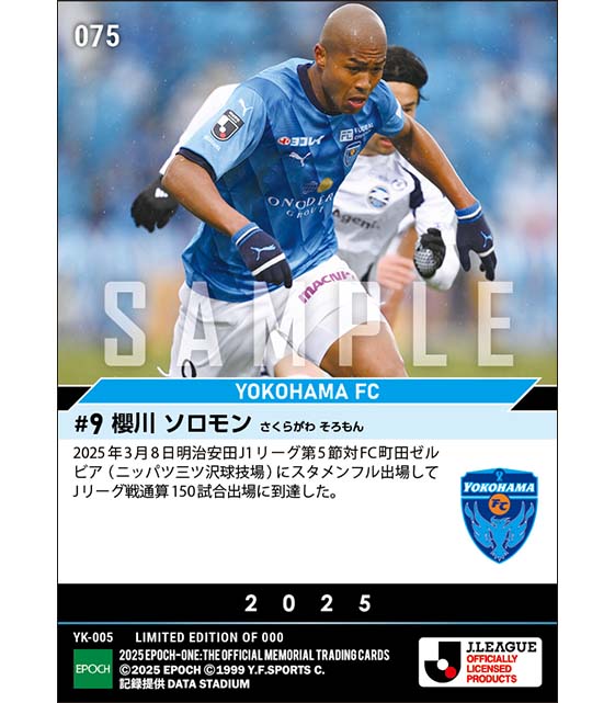 公式【櫻川ソロモン】Jリーグ通算150試合出場(25.3.8) のカードを買うならエポックワン!税込・送料無料!