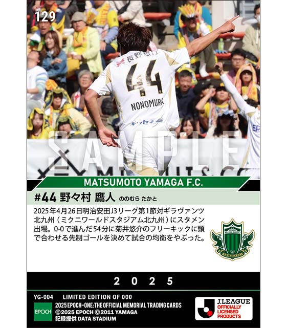 公式【野々村鷹人】均衡をやぶる先制ゴール(25.4.26) のカードを買うならエポックワン!税込・送料無料!