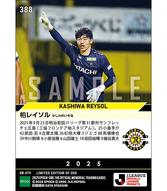 公式【柏レイソル】2025シーズン第31節スタメン(25.9.23) のカードを買うならエポックワン!税込・送料無料!