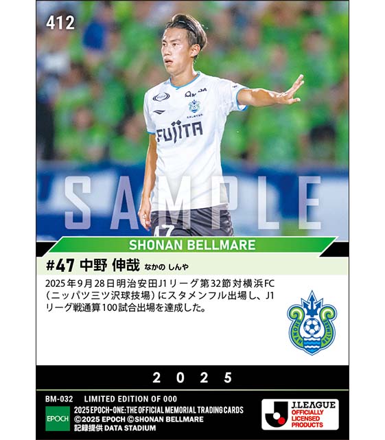 公式【中野伸哉】J1通算100試合出場(25.9.28) のカードを買うならエポックワン!税込・送料無料!