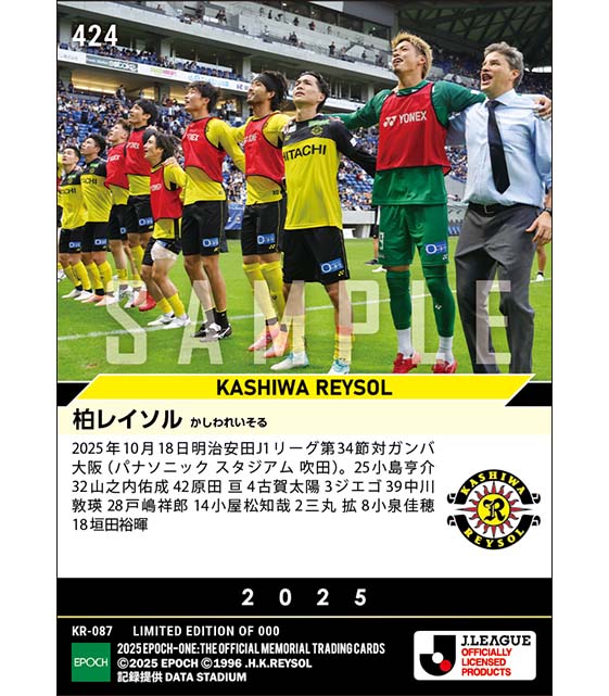 公式【柏レイソル】2025シーズン第34節スタメン(25.10.18) のカードを買うならエポックワン!税込・送料無料!
