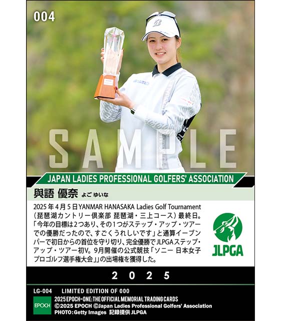 公式【與語優奈】YANMAR HANASAKA Ladies Golf Tournament 完全Vで念願のプロ初優勝(25.4.5) のカードを買うならエポックワン!税込・送料無料!