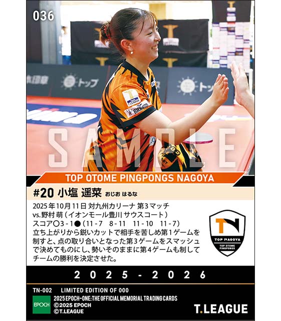 公式【小塩遥菜】接戦を制する今季3勝目でチームの勝点4獲得に貢献(25.10.11) のカードを買うならエポックワン!税込・送料無料!