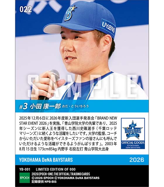 公式RC【小田康一郎】新入団発表(ドラフト1巡目)「所信表明『新人王』」(25.12.6) のカードを買うならエポックワン!税込・送料無料!