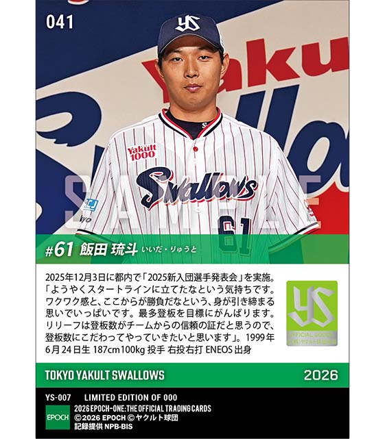 公式RC【飯田琉斗】新入団発表(ドラフト7巡目)「登板数にこだわってやっていきたい」(25.12.3) のカードを買うならエポックワン!税込・送料無料!
