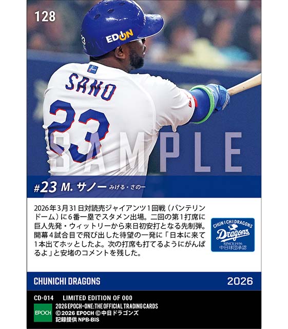 公式【サノー】待望の来日初本塁打(26.3.31) のカードを買うならエポックワン!税込・送料無料!