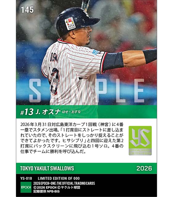 公式【オスナ】バックスクリーンに飛び込む今季初アーチ(26.3.31) のカードを買うならエポックワン!税込・送料無料!