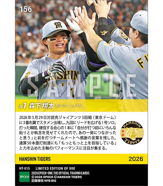 公式【森下翔太】今季チーム1号で通算50本塁打到達(26.3.29) のカードを買うならエポックワン!税込・送料無料!