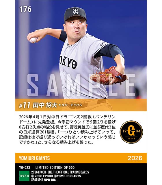 公式【田中将大】野茂英雄氏に並ぶ日米通算201勝目(26.4.1) のカードを買うならエポックワン!税込・送料無料!