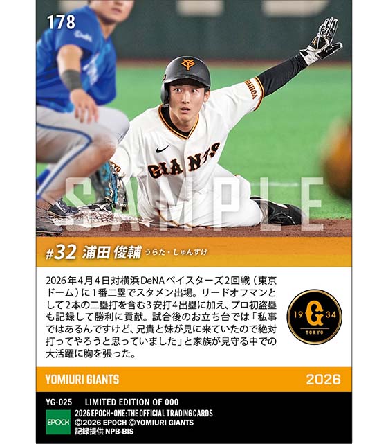 公式【浦田俊輔】1番に座ってプロ初猛打賞&初盗塁(26.4.4) のカードを買うならエポックワン!税込・送料無料!