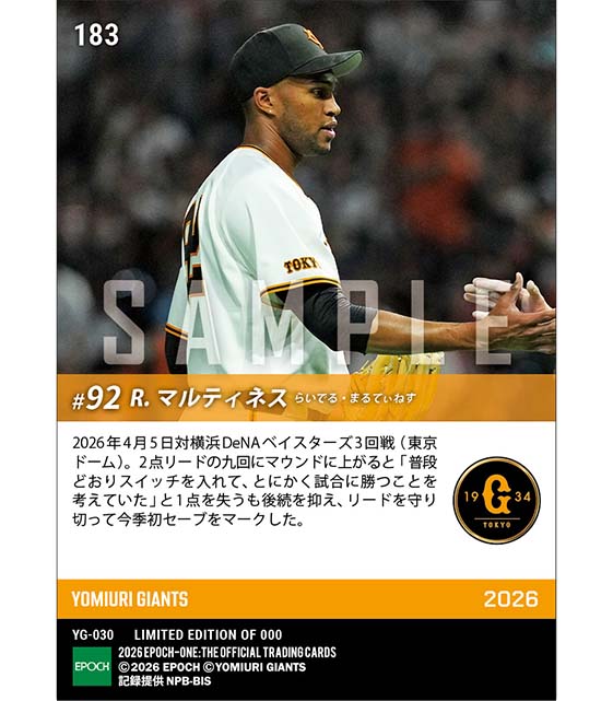 公式【マルティネス】今季初登板初セーブ(26.4.5) のカードを買うならエポックワン!税込・送料無料!