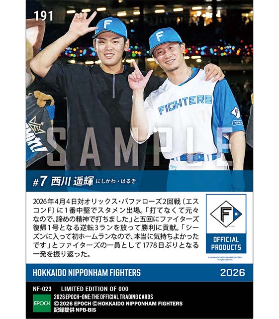 公式【西川遥輝】1778日ぶり古巣復帰後初本塁打(26.4.4) のカードを買うならエポックワン!税込・送料無料!