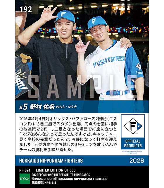 公式【野村佑希】発奮の決勝弾(26.4.4) のカードを買うならエポックワン!税込・送料無料!