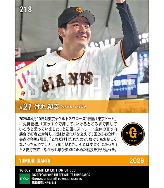 公式RC【竹丸和幸】粘投でつかんだ今季2勝目(26.4.10) のカードを買うならエポックワン!税込・送料無料!
