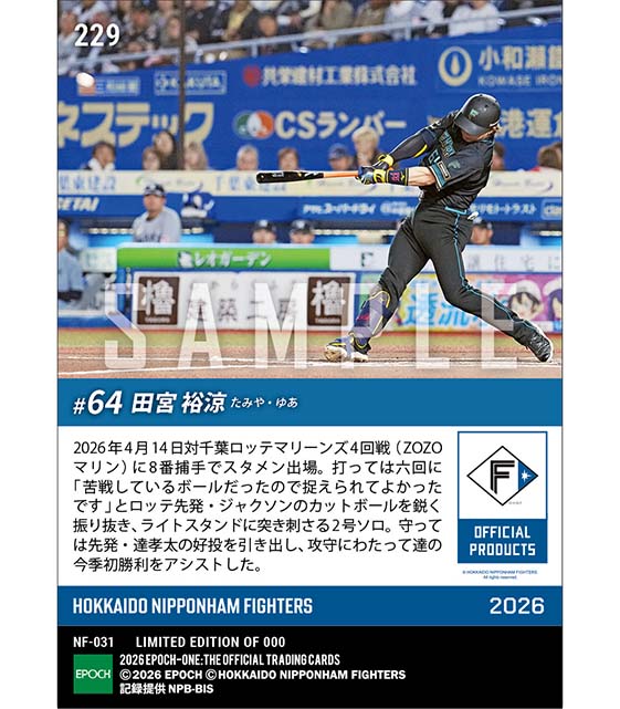 公式【田宮裕涼】地元・千葉で凱旋弾(26.4.14) のカードを買うならエポックワン!税込・送料無料!