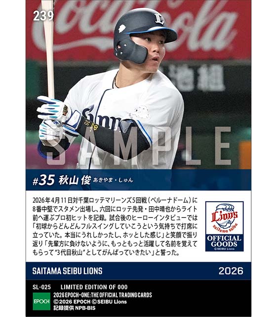 公式RC【秋山 俊】“3代目秋山”がプロ初安打(26.4.11) ※ランダムで 1of1 大当たりカード発送対象 のカードを買うならエポックワン!税込・送料無料!