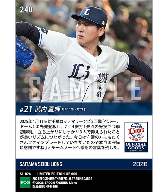 公式【武内夏暉】感謝の今季初勝利(26.4.11) のカードを買うならエポックワン!税込・送料無料!
