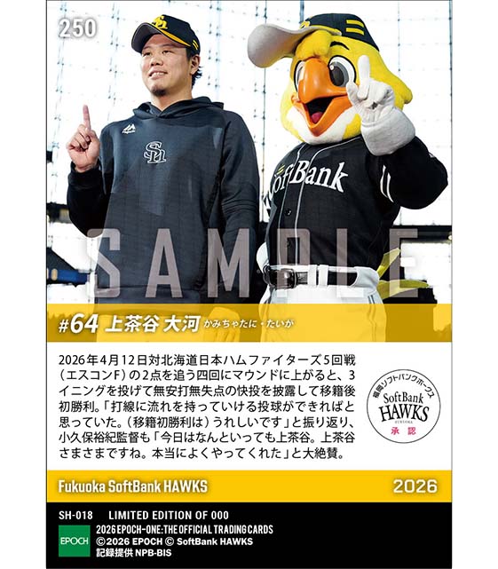 公式【上茶谷大河】流れを呼び込む好投で移籍後初勝利(26.4.12) のカードを買うならエポックワン!税込・送料無料!