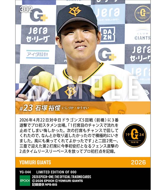 公式【石塚裕惺】プロ初スタメンでプロ初打点となるフェンス直撃タイムリー(26.4.22) のカードを買うならエポックワン!税込・送料無料!