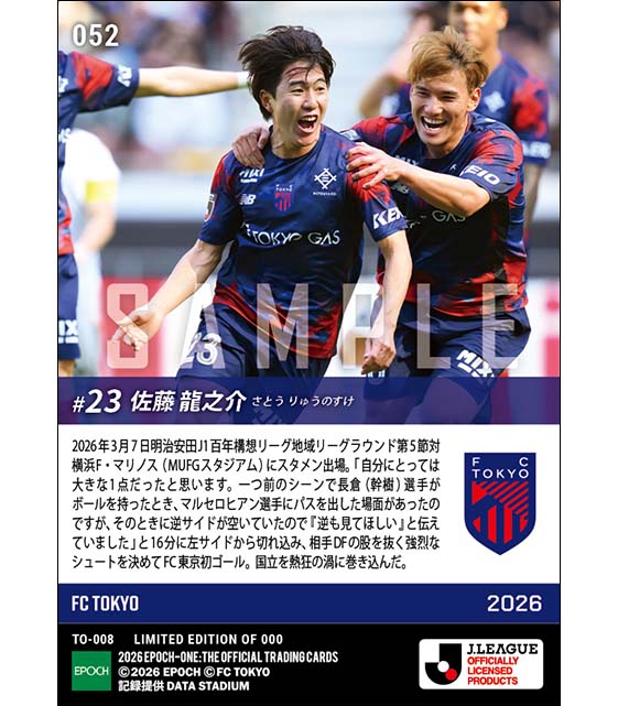 公式【佐藤龍之介】国立を沸かせる待望の青赤初ゴール(26.3.7) のカードを買うならエポックワン!税込・送料無料!