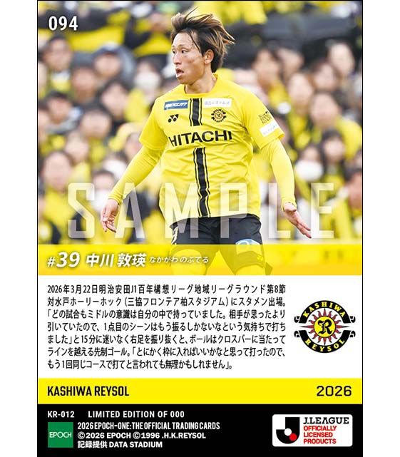 公式【中川敦瑛】先制ミドルで今季初ゴール(26.3.22) のカードを買うならエポックワン!税込・送料無料!